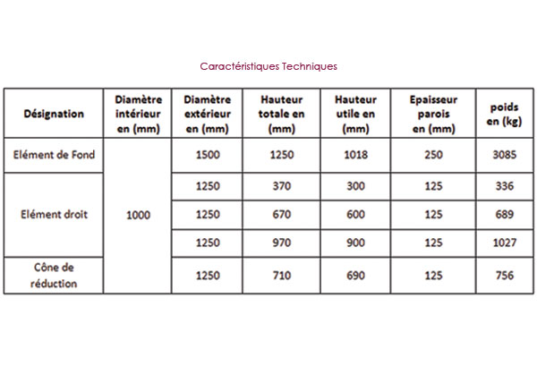 Désignation Diamètre intérieur (en mm) Diamètre intérieur (en mm) Hauteur Total (en mm) Hauteur Utile (en mm) Epaisseur parois (en mm) Poids (en kg)